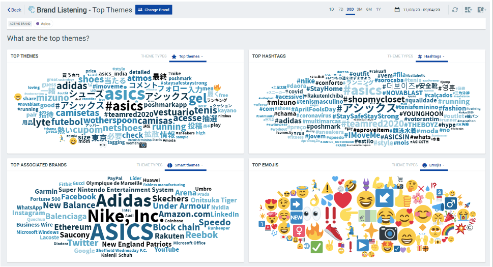 Next, click Top Themes in the left menu to see the key concepts people associate with your brand, the hashtags your audience uses, and other brands that your audience is interested in.