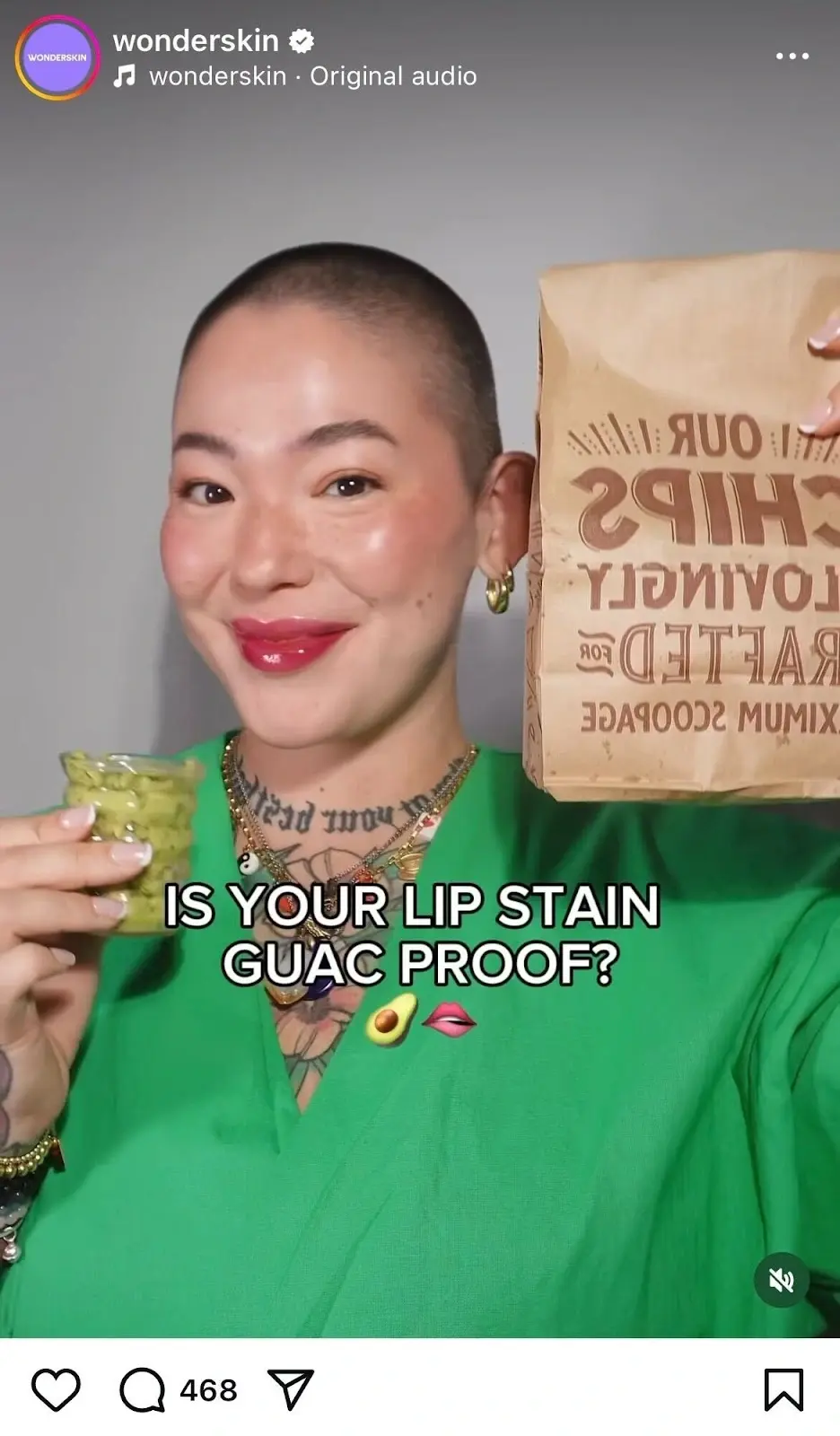For example, this engaging reel by Wonderskin was viewed over a million times. It starts by introducing the core theme of the video—is the brand’s lip stain “guacamole proof”?