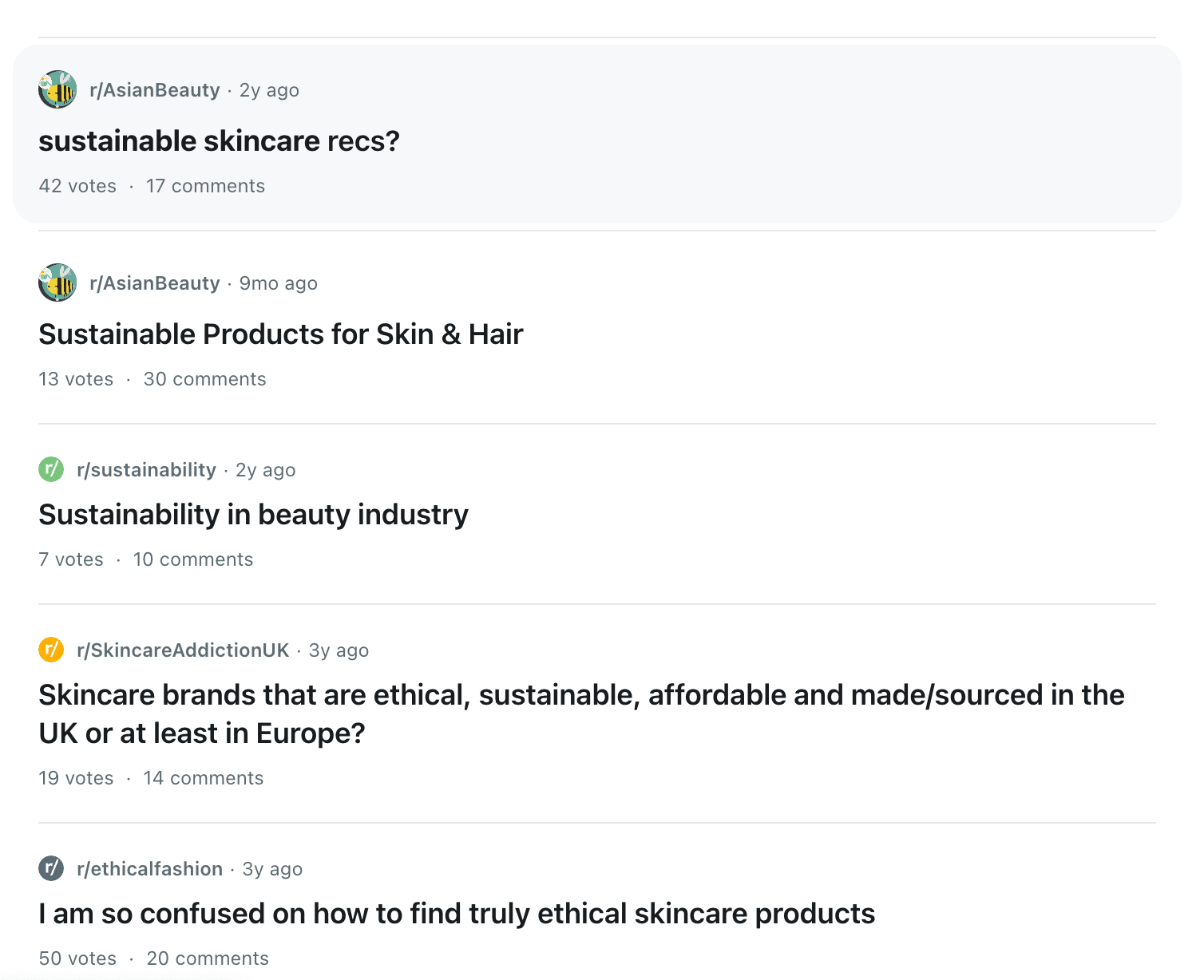 For example, you could analyze Reddit to see how people refer to sustainable skincare: