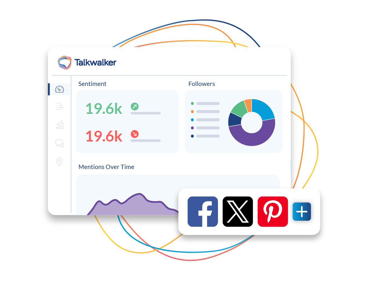 Talkwalker tracks keywords and mentions across 30 social media networks, including Instagram, Facebook, Twitter (X), Pinterest, and more.