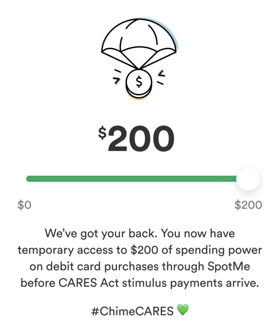 #ChimeCARES was first piloted among a select group of 1,000 users, offering an advance of $1,200. It was since adapted based on the results of the pilot and amended to $200 for 100,000 people.