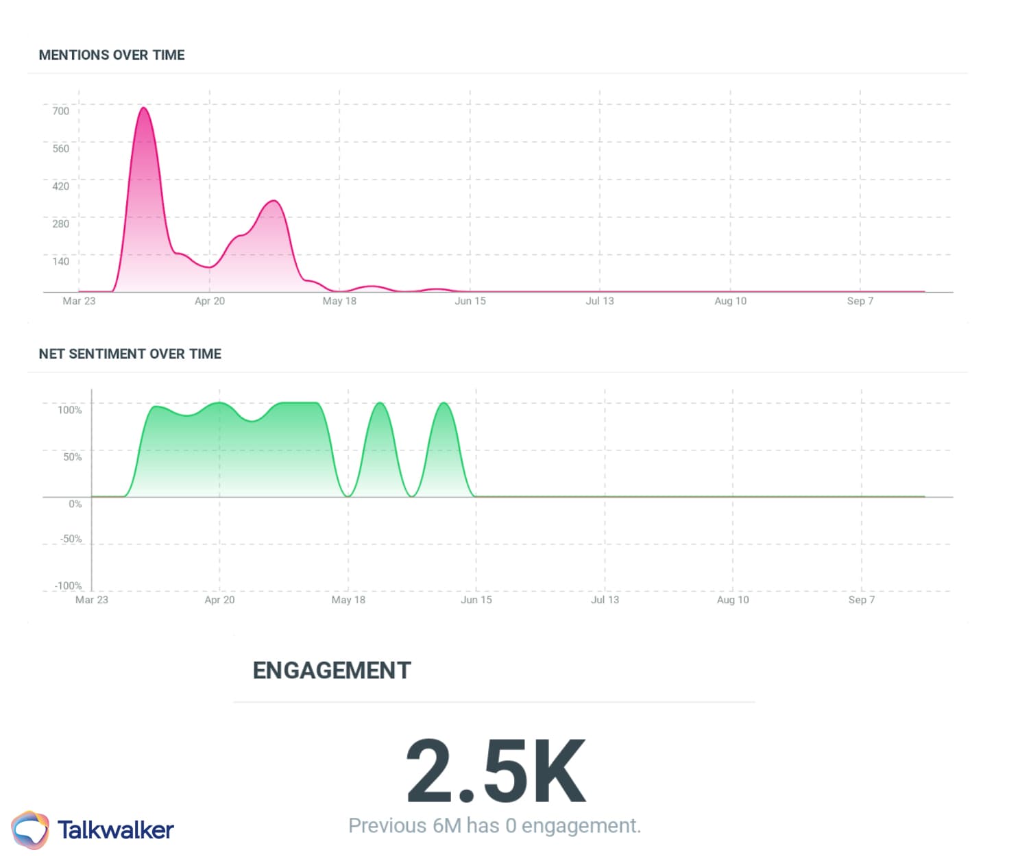 Share of voice, on the other hand, shows how the market as a whole feels about your brand. Share of voice is a unique way to see exactly how much coverage your brand - or a specific theme or campaign - is receiving in a bigger context.