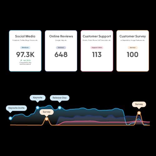 Leave behind repetitive and time-intensive consumer research and gain valuable insights in real-time. Our AI-powered platform enables you to instantly gather, arrange, and analyze your customers’ conversational data across all touchpoints.