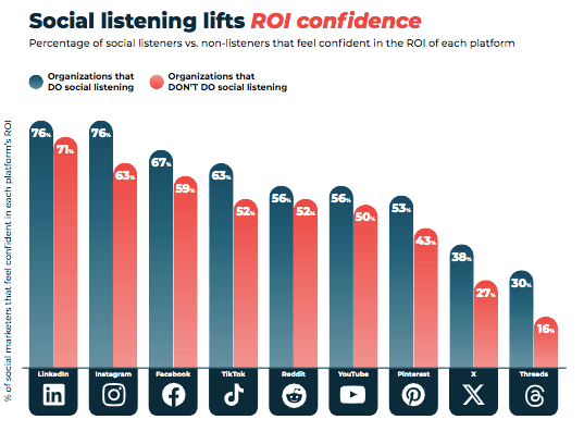 Hootsuite’s 2025 Social Media Trends Report found that social listening improved ROI confidence for marketers across all social platforms.