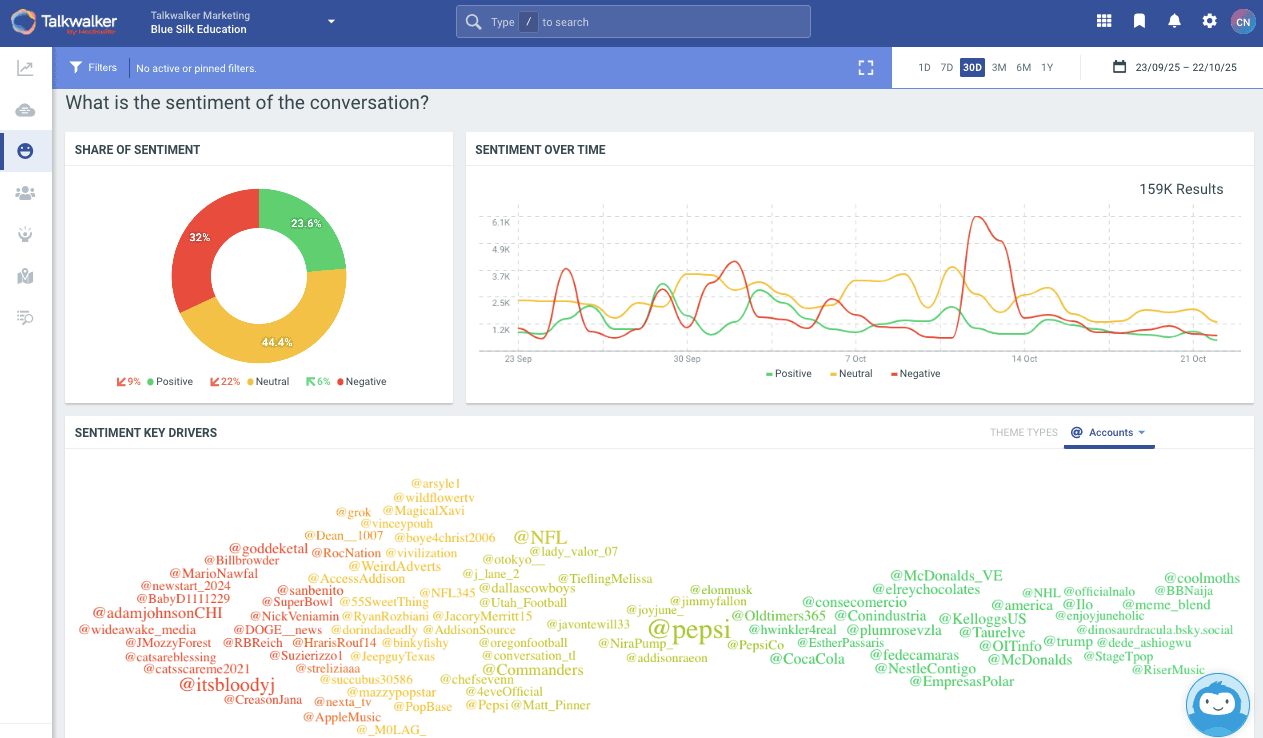 Social listening with a tool like Talkwalker allows you to catch changes in social sentiment early, so you can manage crises and make it right with any social users who are calling you out for valid concerns. You can also publish content addressing concerns before they escalate.