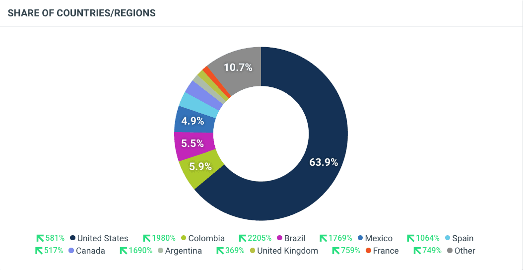 North America led participation with 391,212 mentions, followed by South America (46,002) and Europe (39,715).