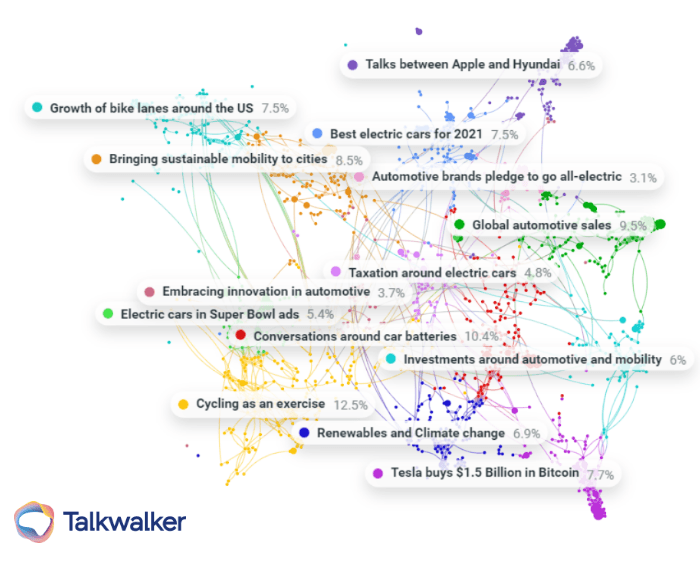 Clustering conversations around green mobility in the United States allows us to draw some interesting connections.