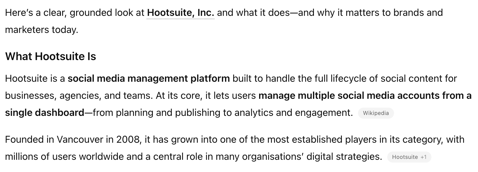 Citation tracking doesn’t show the full picture because most people only read the summary, not the sources themselves. An AI answer might link to your website, but still describe your brand in a way that feels outdated or incomplete.