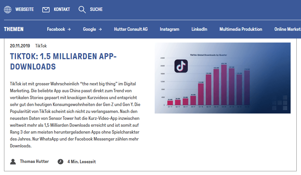 Thomas Hutter | Das Spezialgebiet aller Artikel von Thomas Hutter liegt auf den Vermarktungsmöglichkeiten auf Facebook, wie AdManager-Themen oder Neuigkeiten im Bereich StoryAds. Aber auch beim Kampagnen-Manager von LinkedIn (Artikel hier) oder auf Xing (Artikel hier) kennt sich Thomas gut aus. Insgesamt also ein großartiges Blog, wenn es um Social Ads geht - mit unglaublicher tiefer technischer und praktischer Expertise.