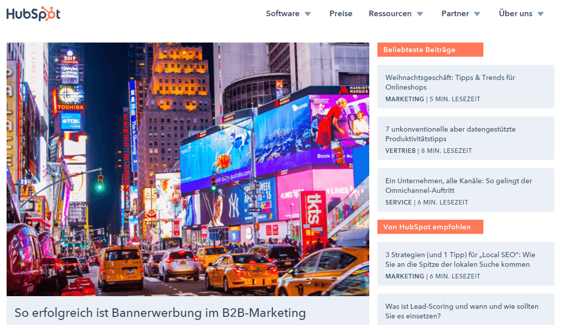 Die Inhalte beim Hubspot Blog sind wirklich breit gefächert: Hier finden Sie das Neueste aus Inbound Marketing, SEO, Social Media & Vertrieb und Service. Aber es werden auch regelmäßig Beiträge sowie Tipps und Trick zu Content Marketing veröffentlicht. Die angegebene Lesezeit pro Artikel ist ein Extra, das nicht viele Blogs haben.