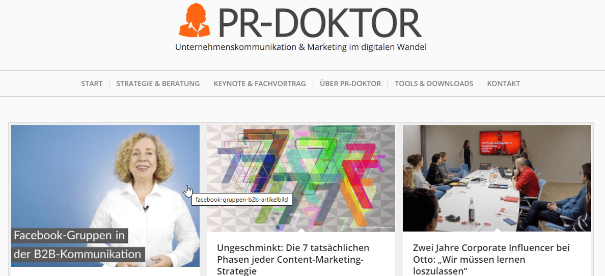 Kerstin Hoffmann | Unternehmenskommunikation, PR und Marketing im digitalen Wandel sind die Hauptthemen im Blog der Kommunikations- und Strategieberaterin Dr. Kerstin Hoffmann. Content Marketing ist hier schon ein Schwerpunktthema, es gibt aber auch Artikel zu Social-Media-Spezialthemen wie Facebook-Gruppen in der B2B-Kommunikation. Und Themen wie Karriereberatung oder Mentaltraining finden in Ihrem Blog platz. Daher ein sehr abwechslungsreiches Blog mit großer Themenvielfalt.
