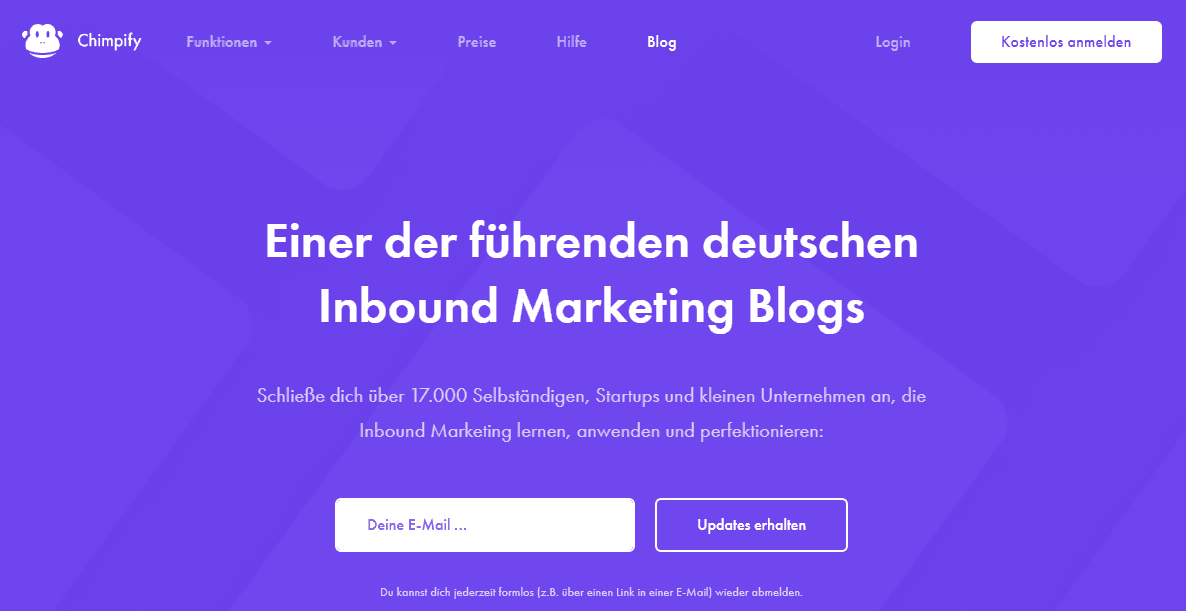 | Inbound-Marketing ist das Thema von Vladislav Melnik, dem Gründer von Chimpify. Der Blog des Software-Unternehmens ist seit Jahren Referenz in dem Bereich. Und die zumeist von Melnik selbst geschriebenen Anleitungen, z.B. für das Thema Content-Recherche, sind echt immer unterhaltend, detailliert ausgeführt und zumeist einfach nachzuvollziehen.