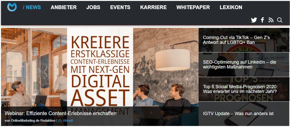 Täglich News, Tipps, Tricks und Expertenmeinungen gibt es auf Onlinemarketing.de. Alles was die Branche bewegt, sagen sie da. Wir finden, das stimmt. Denn SEO-Optimierung auf LinkedIn gehört hier genauso rein wie Machine Learning und Facebook-Anzeigen.