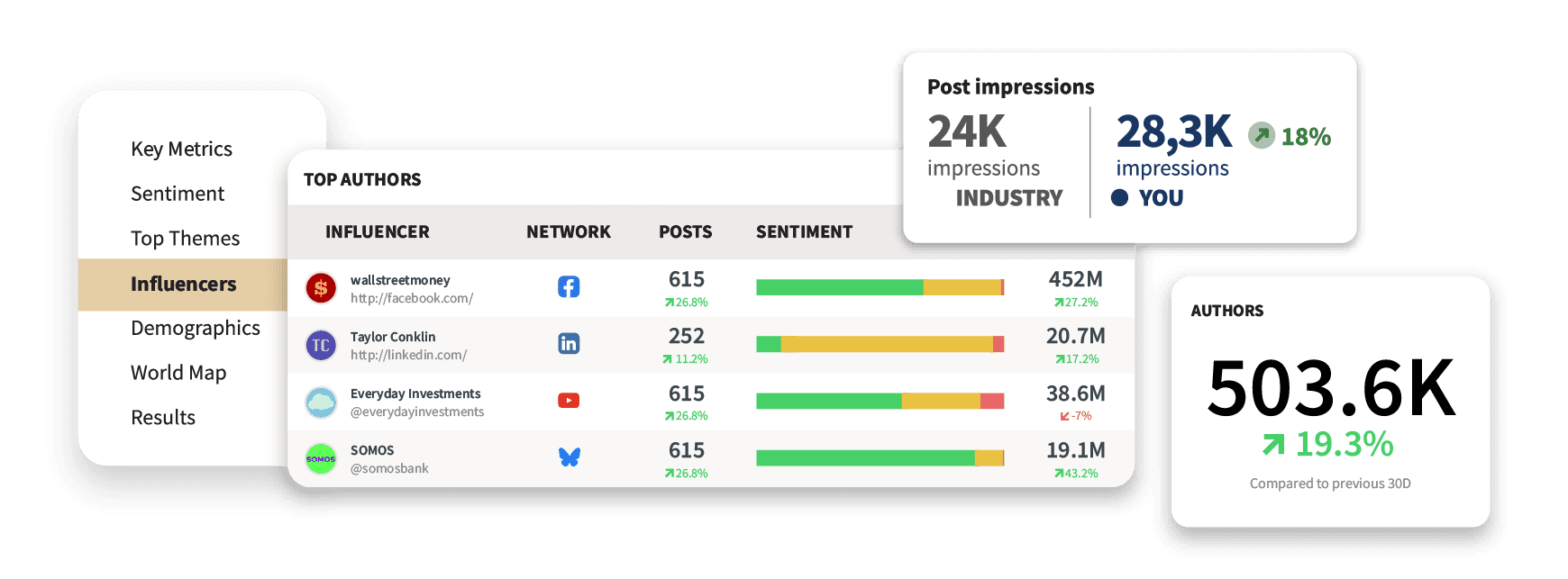 Talkwalker identifies the key platforms driving big discussions, including the top social networks, blogs, and news sites that are influencing the narrative. It also pinpoints the most influential authors and creators, so you can see who’s shaping public opinion.