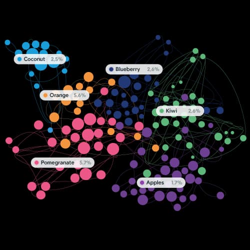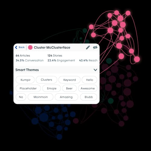 Conversation Clusters map any topic visually, showing you the trends and connections behind millions of social, media and consumer data points in real time.