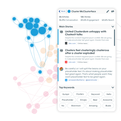 Semantically linked clusters help you detect emerging themes and trending conversations, follow shifts in public opinion and gain a full understanding of the situation in minutes.